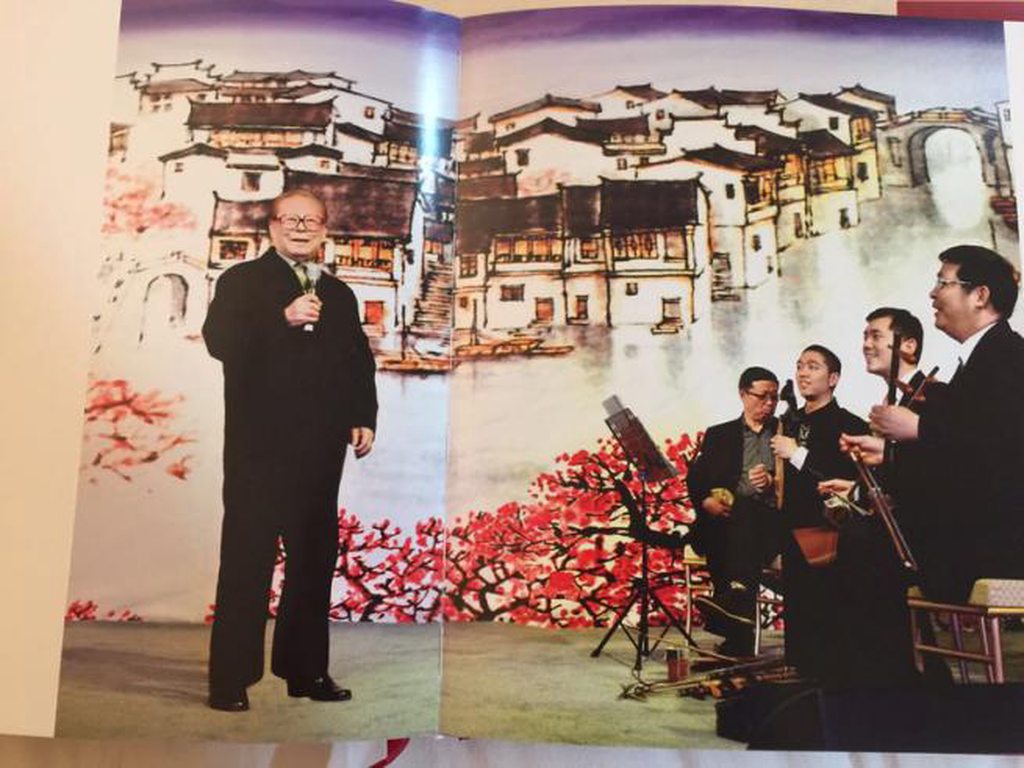 大学时代,江的同学们演出小品剧时,江便给他们拉二胡伴奏,而在他任总书记后,他也没忘了这陪伴他一生的传统乐器,在其应金日成之邀访问朝鲜时,随身带的行李中,就有一把二胡。访问期间,偶得宽余,江就兴致勃勃地拉上一阵。98年克林顿访华时,欢迎晚会结束后,江兴致盎然地从演员手里拿过二胡,拉了一曲美国民歌《稻草里的火鸡》。这次演奏不是江心血来潮,而是赴了五年之约,93年中美两国领导人某事之后在西雅图峰会第一次见面,江以音乐打破了尴尬,克林顿曾是萨克斯管业余乐手,江特地送了他一件中国制造的萨克斯管。江说,他也爱好音乐,但不会吹萨克斯管, 却会拉二胡。克林顿笑着说,“将来有机会,我吹给你听听。江立即回答,我可以拉二胡伴奏。